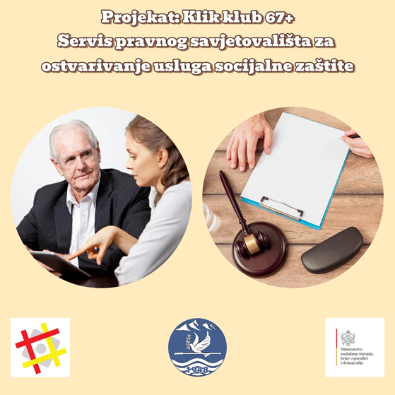 Servis pravnog savjetovališta predstavlja važan korak ka unapređenju dostupnosti prava i usluga socijalne zaštite za starije osobe, a njegov rad dodatno doprinosi cilju projekta „Klik klub 67+“ – poboljšanju kvaliteta života starijih građana kroz pravovremenu podršku, savjetovanje i osnaživanje.
